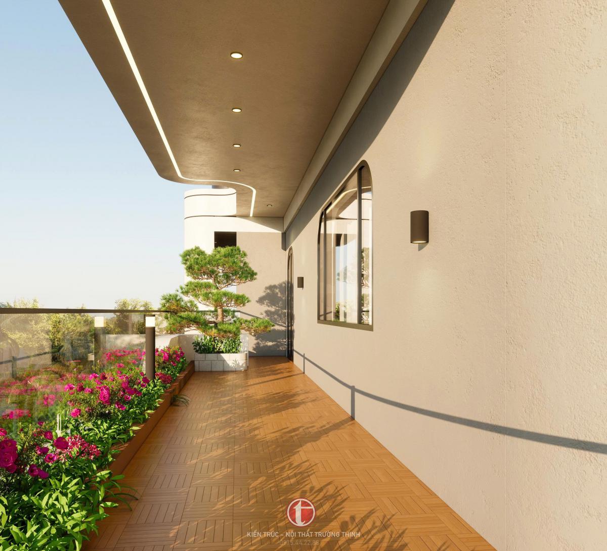 Hệ ban công kết hợp với cửa kính lớn không chỉ tạo điểm nhấn kiến trúc mà còn giúp tăng khả năng lấy ánh sáng tự nhiên cho không gian bên trong. Điều này giúp ngôi nhà luôn sáng sủa và thông thoáng.